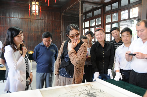 6月15日上午,全国政协委员、中央电视台电视节目主持人、制片人、著名演员倪萍一行在市委宣传部副部长刘定荣的陪同下来我馆参观,倪萍先后参观了固定陈列《三绝奇才——郑板桥》、《楚水流长——兴化简史陈列》和省级文保单位李园,对兴化有着六千多年深厚的文化积淀赞叹不已,表达了对郑板桥的无比崇敬之情。同时,欣赏了郑板桥《兰竹石图轴》、李鱓《秋趣图轴》、黄慎《携琴访友图轴》书画真迹及独具兴化特色的民间曲艺《板桥道情》。