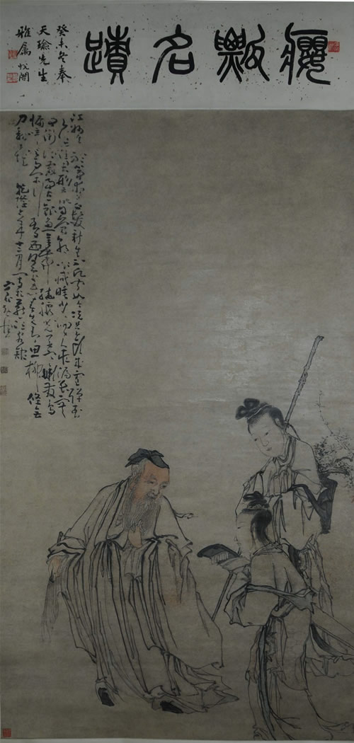 黄慎《携琴访友图轴》清  纸本   兴化市博物馆藏