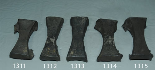 1315长16.2 cm,宽6.1 cm,腰3.6 cm(腰高2.2 cm),高5.4 cm,重 1960g。