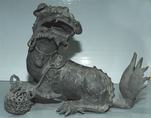 左足盘球座狮铜器 明 黄铜 兴化市博物馆藏