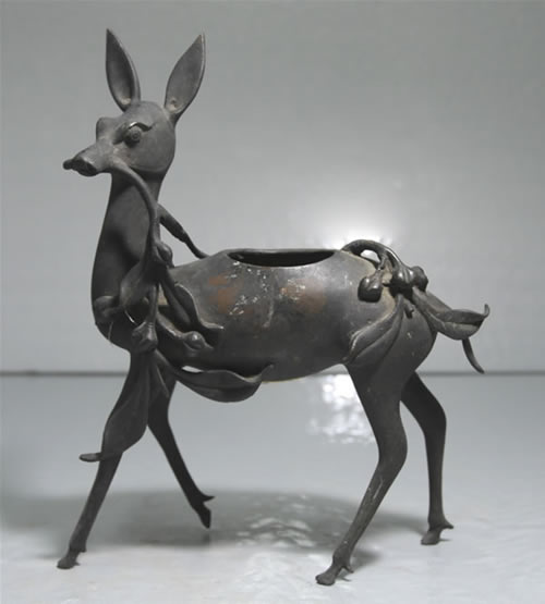 口含桃枝梅花鹿铜器 明 黄铜 兴化市博物馆藏
