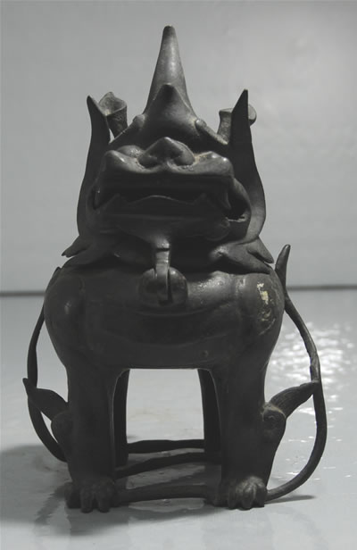 独角兽脚踩蛇薰炉 明 黄铜 兴化市博物馆藏