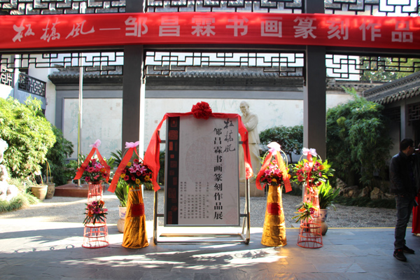 本次展览作为第十四届中国·兴化郑板桥艺术节重要活动项目之一,共展出郑板桥书画传承人邹昌霖先生精品力作50余幅,其中涵盖有书法、国画、篆刻、紫陶、紫砂、留青竹刻等作品类,具有较高的艺术价值和观赏价值。 邹昌霖,字雨亭、1966年生,江苏省书法家协会会员。泰州市美术家协会会员,泰州市花鸟画研究会理事、泰州市中国画学会理事、兴化市中国画学会副秘书长、扬州八怪书画院特聘画家,兴化市书法院副院长,第十二届兴化市政协委员,第十三届兴化市政协常委。作品多次参加省市书画展览并多次获奖,先后在扬州个园、扬州瘦西湖、福建厦门成功举办个人书画展览、报纸、电台多次作过专题报导,所画兰竹石图长期陈列于兴化郑板桥纪念馆,河南省范县郑板桥纪念馆,作品还被日本、韩国、台湾等国家和地区的友人收藏。