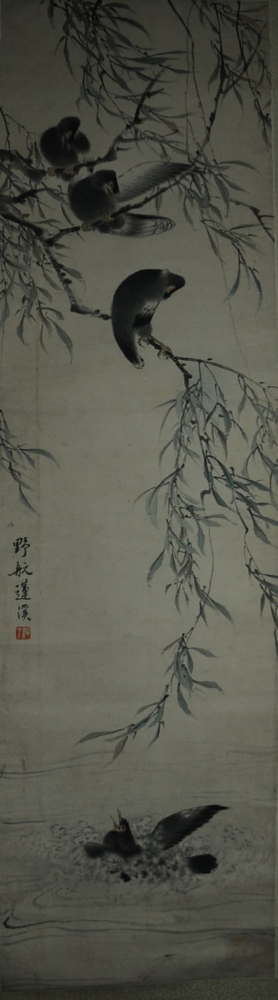 1348莲溪柳塘嬉水图轴